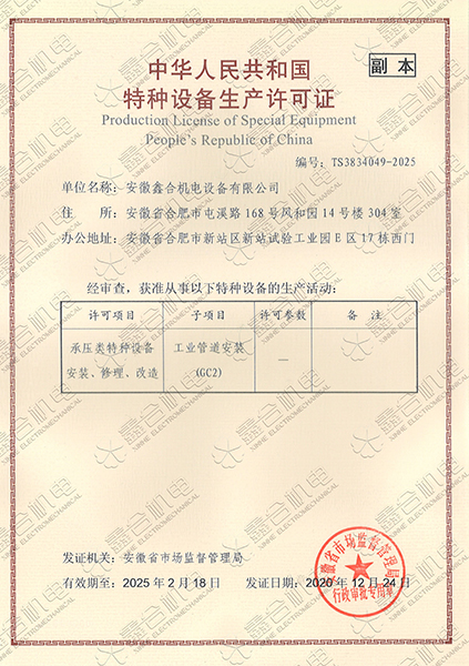 目前我公司具有建筑機(jī)電安裝工程專(zhuān)業(yè)承包一級(jí)資質(zhì)、總承包二級(jí)、GC2壓力管道設(shè)計(jì)、施工資質(zhì)。現(xiàn)有高級(jí)工程師5名、高級(jí)技師55名、工程師22名、助工25名、技術(shù)員22名、各類(lèi)專(zhuān)業(yè)技師50多名,強(qiáng)大的技術(shù)力量及精良的施工隊(duì)伍,為客戶(hù)提供全方位服務(wù)。 公司本著“一切為了用戶(hù)”的經(jīng)營(yíng)理念,“以品質(zhì)求生存、以誠(chéng)信贏(yíng)市場(chǎng)、以管理促發(fā)展”為要求,努力為廣大客戶(hù)提供專(zhuān)業(yè),優(yōu)質(zhì)、高效的服務(wù)。
